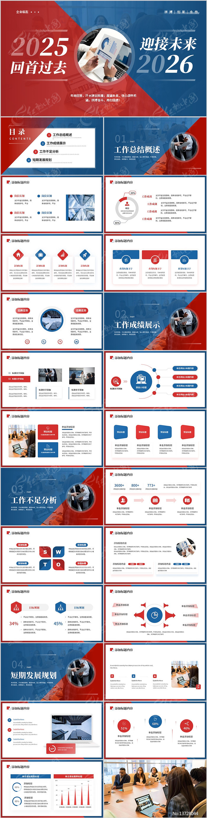 红蓝撞色2026年终工作总结PPT通用下载_红动中国
