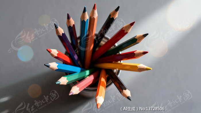 笔筒里的不同颜色彩铅笔