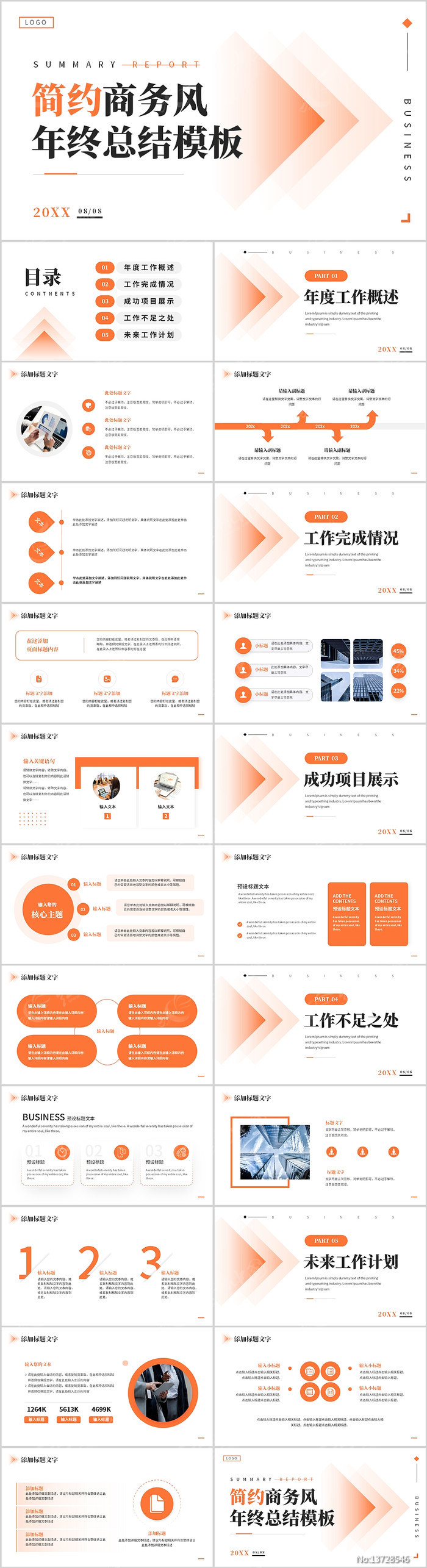 橙色简约商务年终总结述职报告PPT模板下载_红动中国
