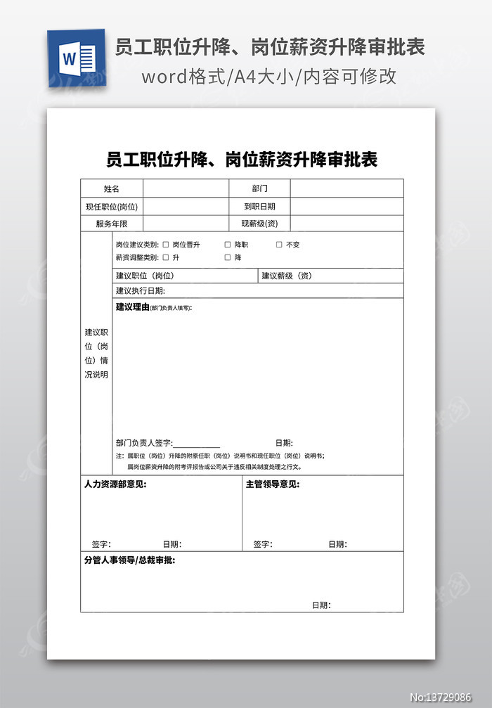 员工职位升降岗位薪资升降审批表下载_红动中国