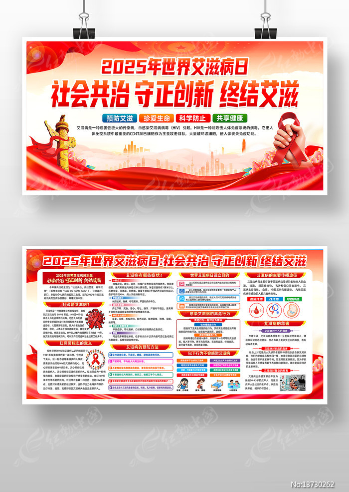 党建风2025年世界艾滋病日宣传展板设计图片下载_红动中国