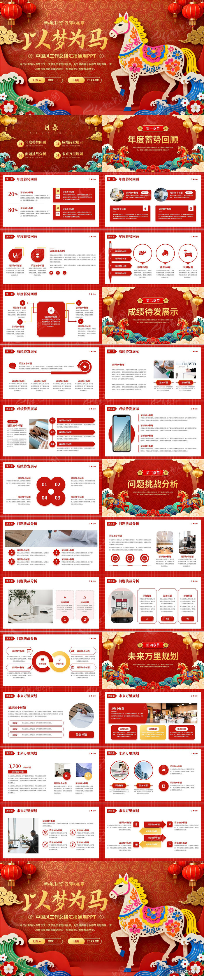 2026马年中国风工作总结年会通用PPT下载_红动中国