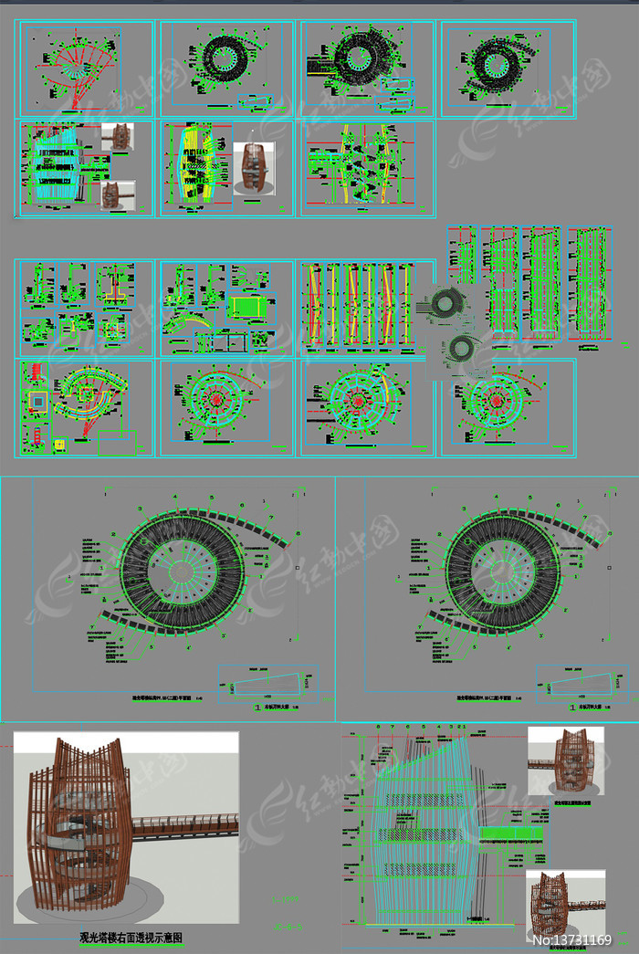 观光塔楼CAD施工图 效果图图片下载_红动中国