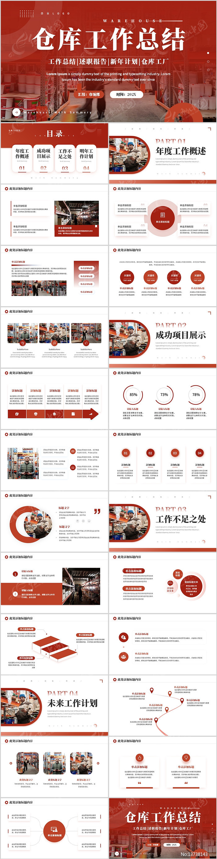 红色仓库工厂工作总结年终总结PPT模板下载_红动中国