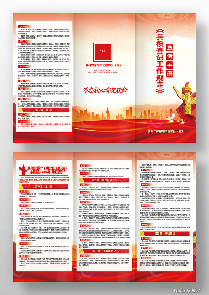 认真贯彻执行兵役登记工作规定部队三折页图片下载_红动中国