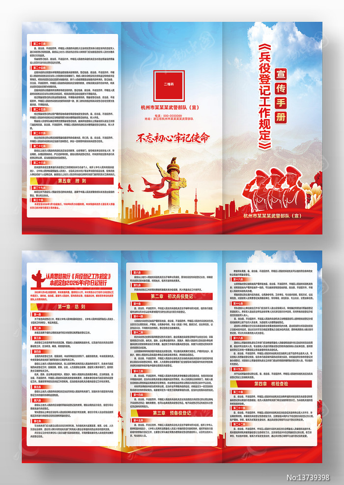 贯彻执行兵役登记工作规定部队三折页手册图片下载_红动中国