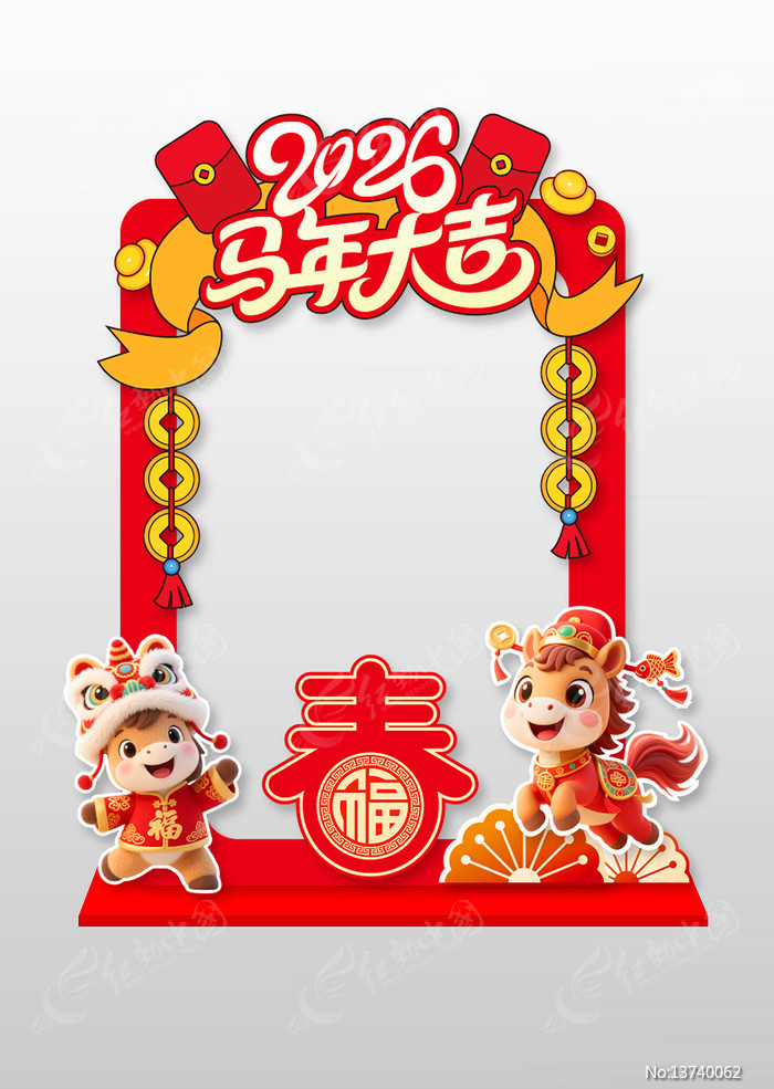 2026马年大吉春节拍照框美陈图片下载_红动中国