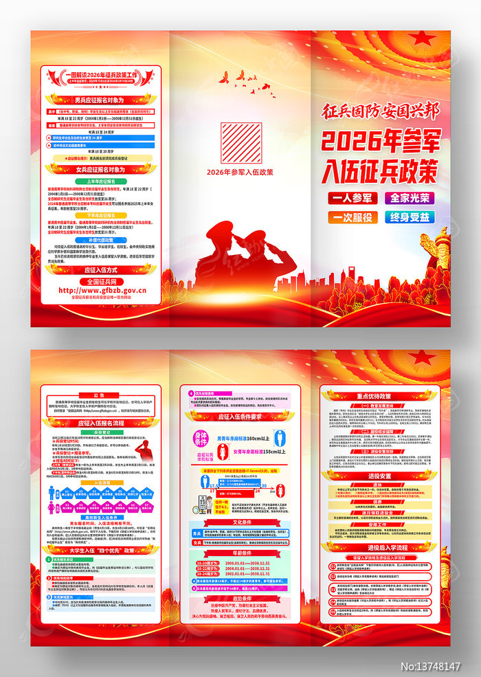 党建风2026年参军征兵新政策宣传折页图片下载_红动中国