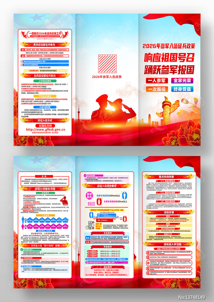 2026年参军征兵新政策宣传三折页手册图片下载_红动中国
