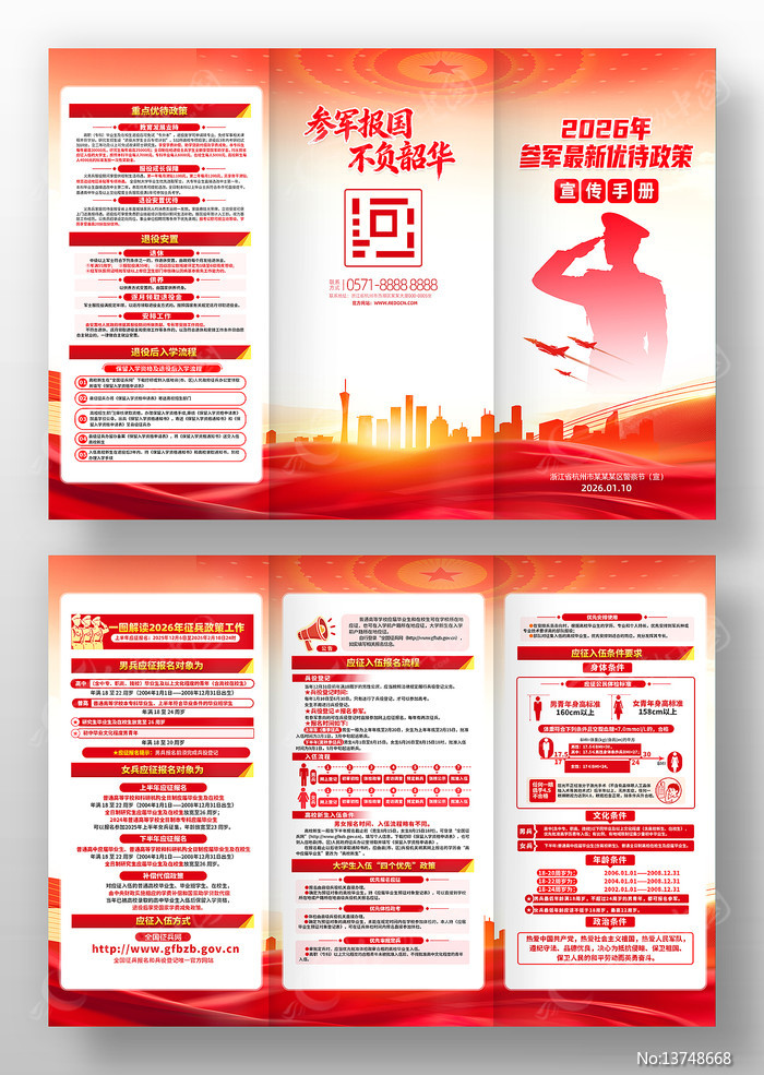 2026年征兵参军最新优待政策宣传三折页图片下载_红动中国