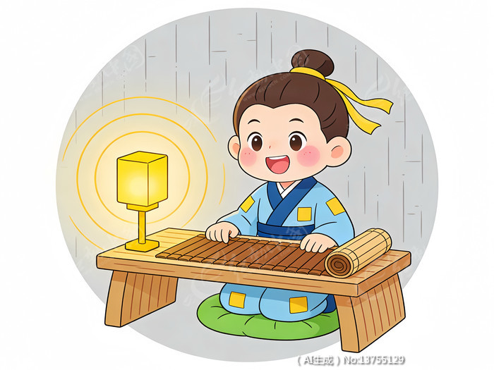 古装少年求学主题的卡通插图