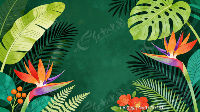 热带植物主题的扁平风插画