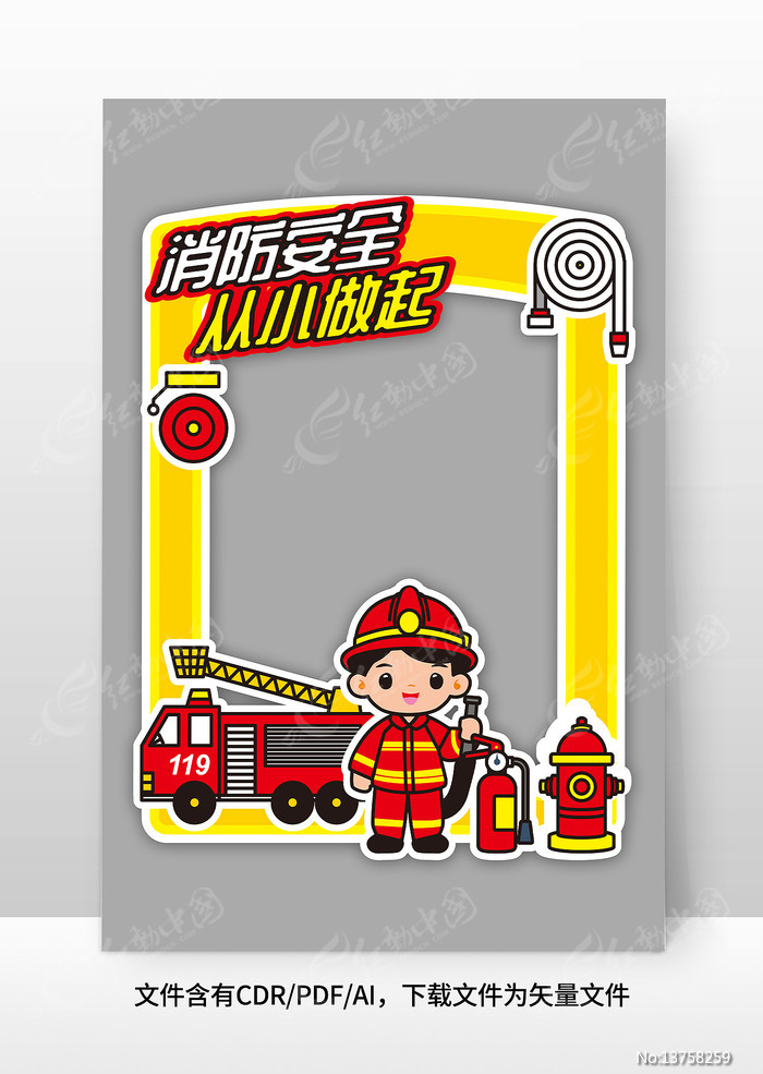 原创消防员展板黄色海报宣传Q板车矢量元素图片下载_红动中国