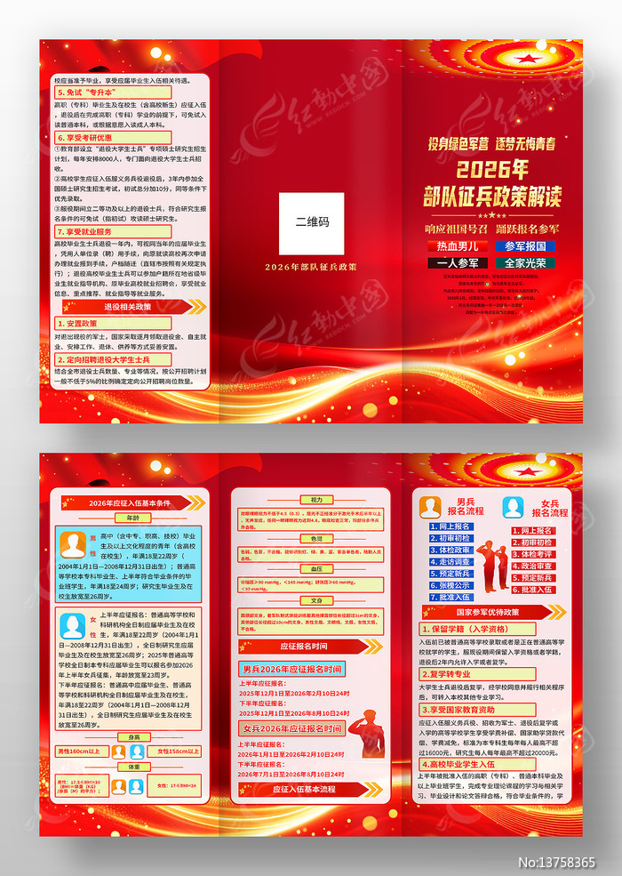 红色大气参军2026年征兵政策解读三折页图片下载_红动中国