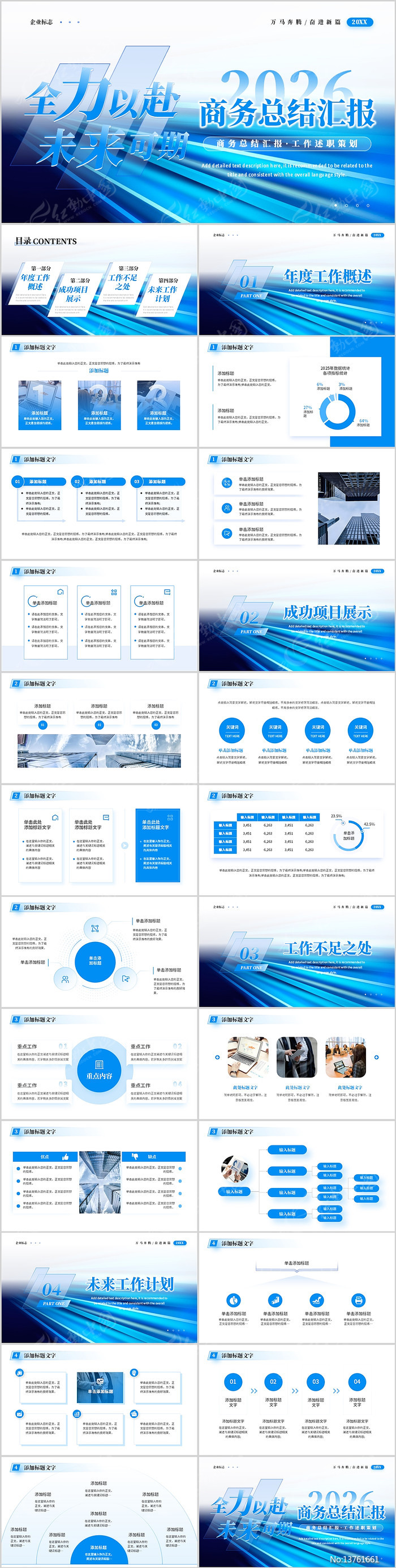 蓝色简约商务工作总结述职汇报PPT模板下载_红动中国