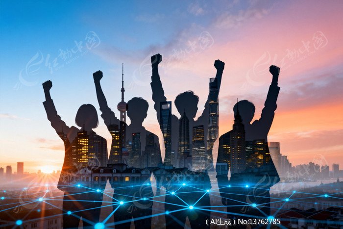 商务精英团队剪影与城市建筑