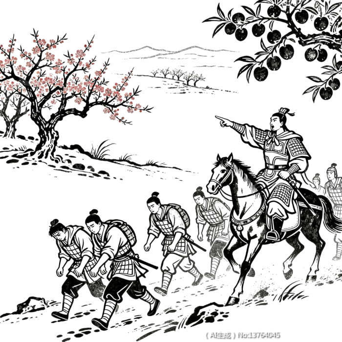 中国风水墨风士兵将领行军场景插画素材