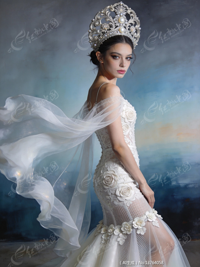 身穿白色婚纱的女王