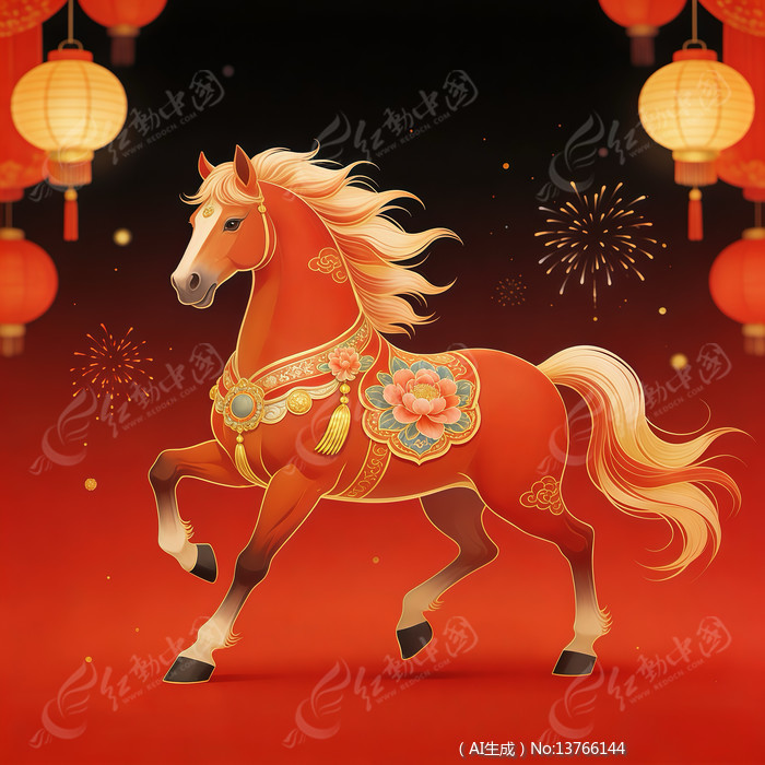 马年生肖主题的贺年插画