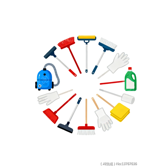 卡通风清洁工具打扫工具摆放插画素材