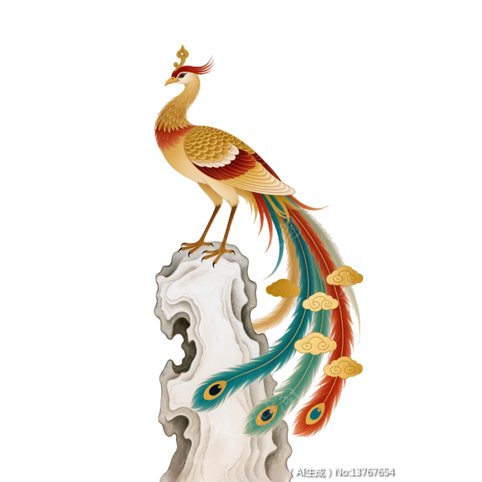 彩绘凤凰立于雕刻石柱上