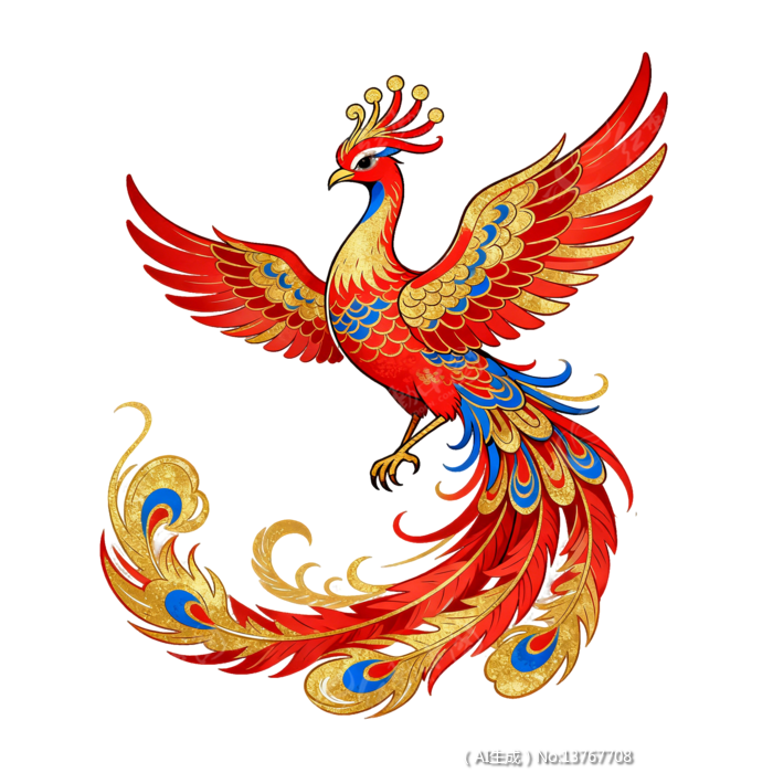 中国风金箔凤凰图案插画元素