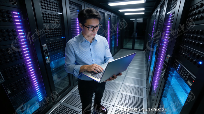 在机房进行数据监控的男人