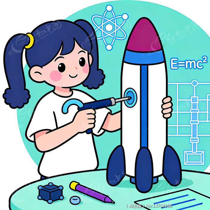 修理火箭模型主题的扁平风插画