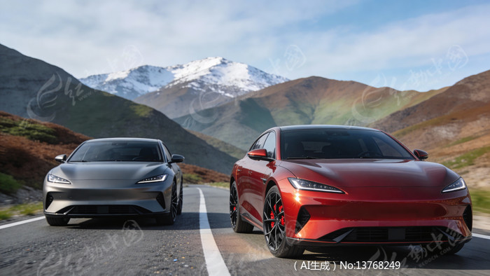 山间公路上的两部豪华轿车