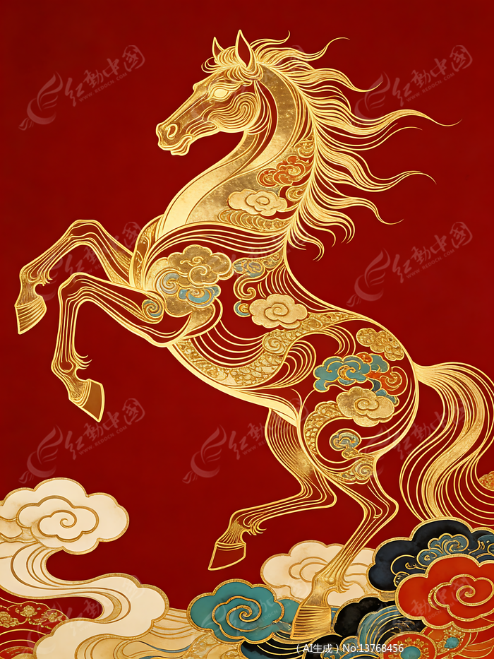 金色云纹战马骏马图