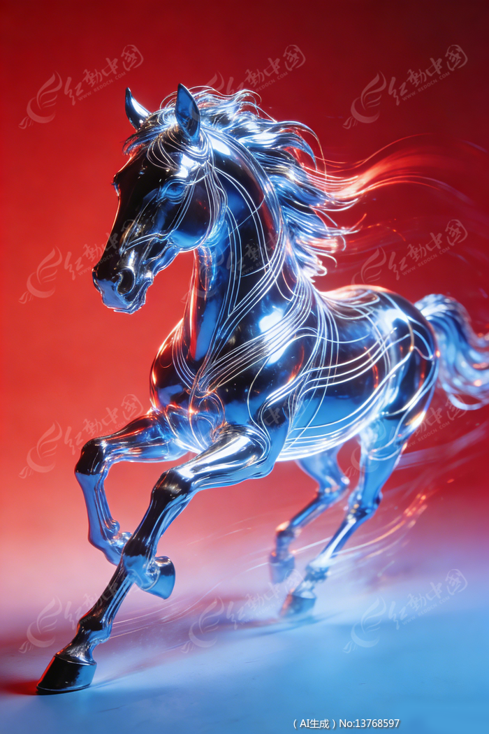 金属奔跑骏马抽象梦幻红色背景元素插画素材