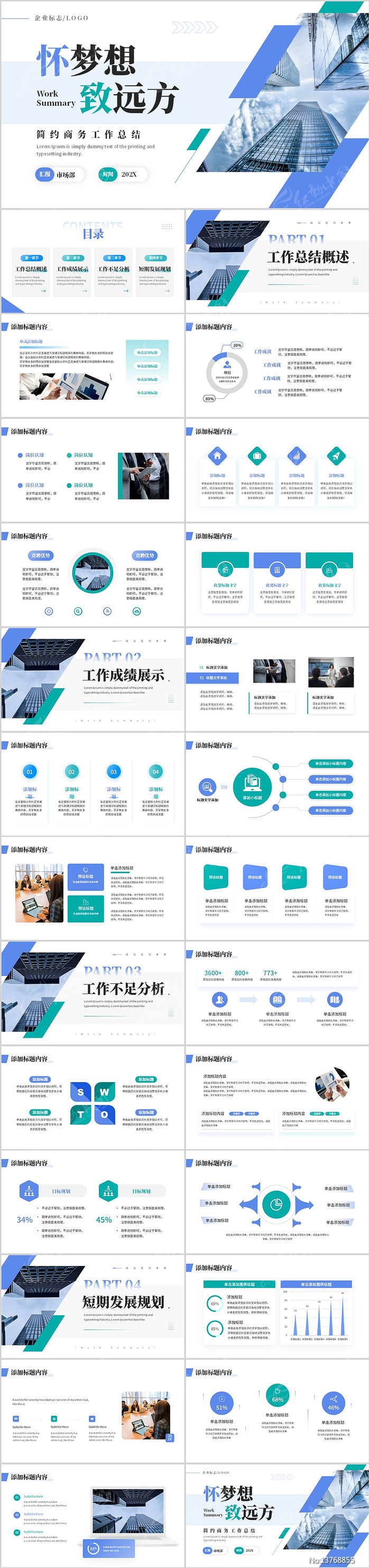 蓝色简约商务工作总结述职报告PPT下载_红动中国