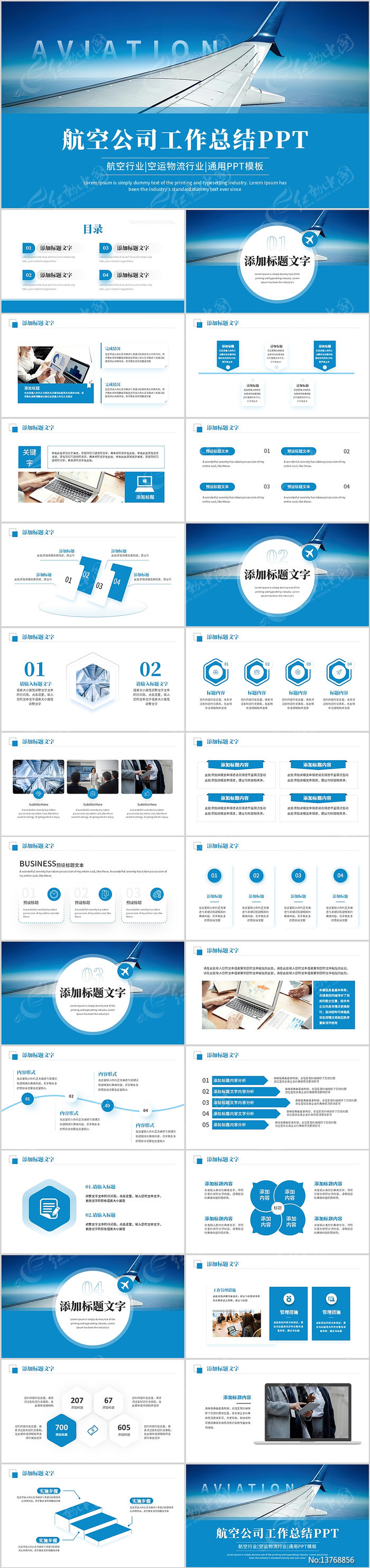 蓝色飞机航空公司工作总结PPT下载_红动中国