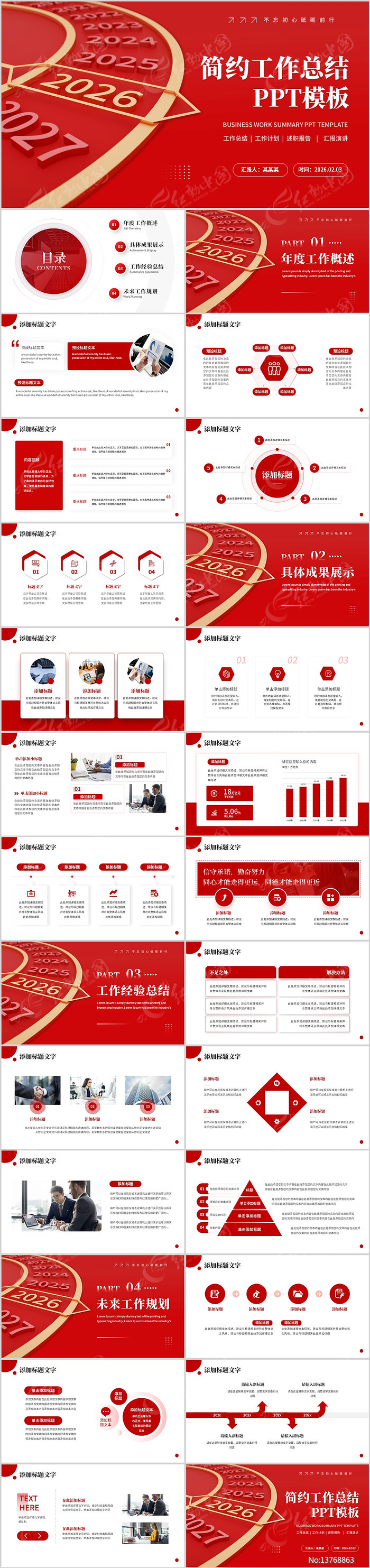 红色简约工作总结年终总结汇报PPT