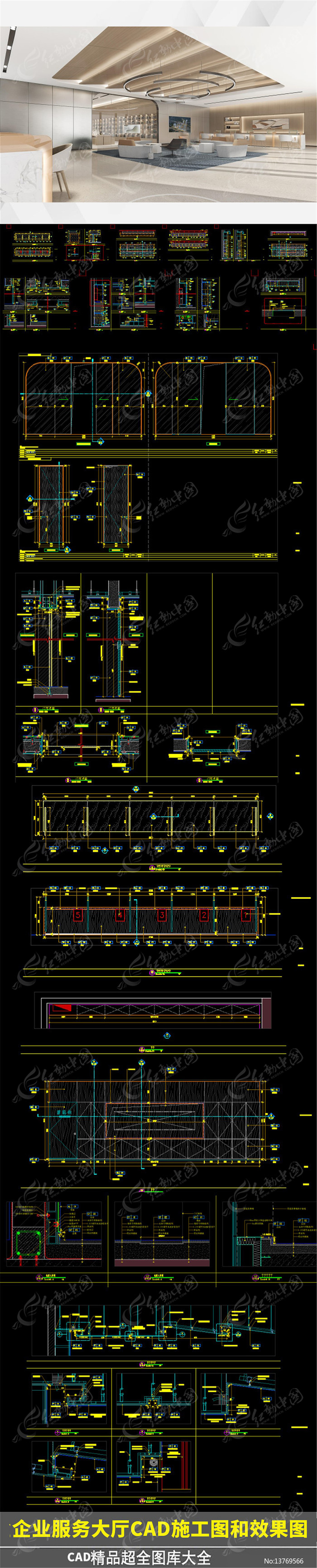 企业服务大厅CAD施工图和效果图图片下载_红动中国