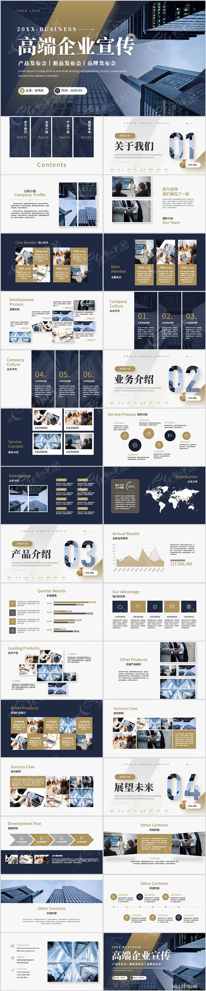 蓝灰色高端企业宣传画册PPT模板下载_红动中国