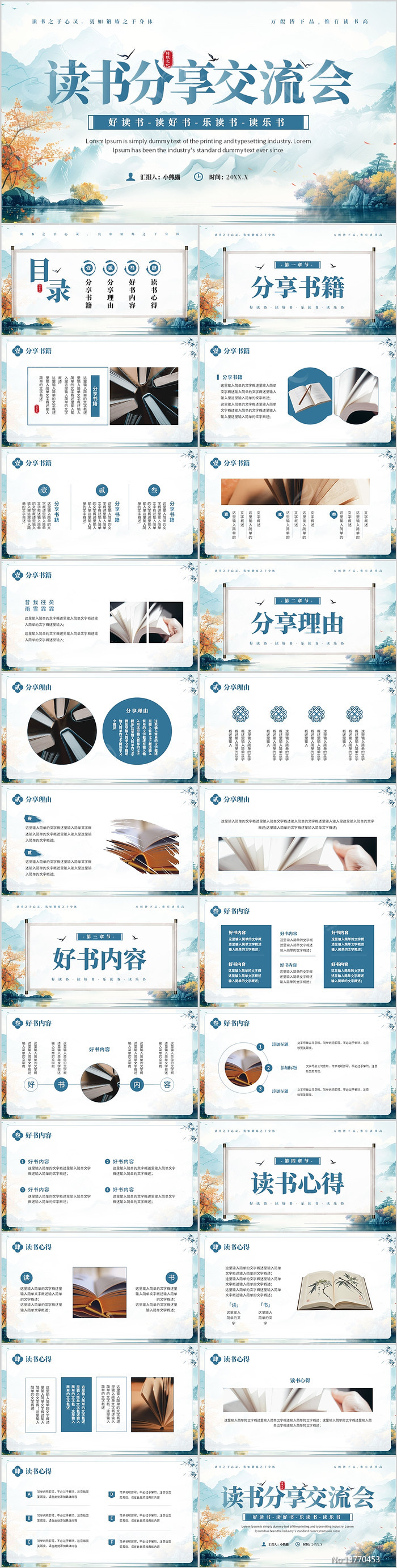 蓝色中国风读书分享交流会PPT模板下载_红动中国