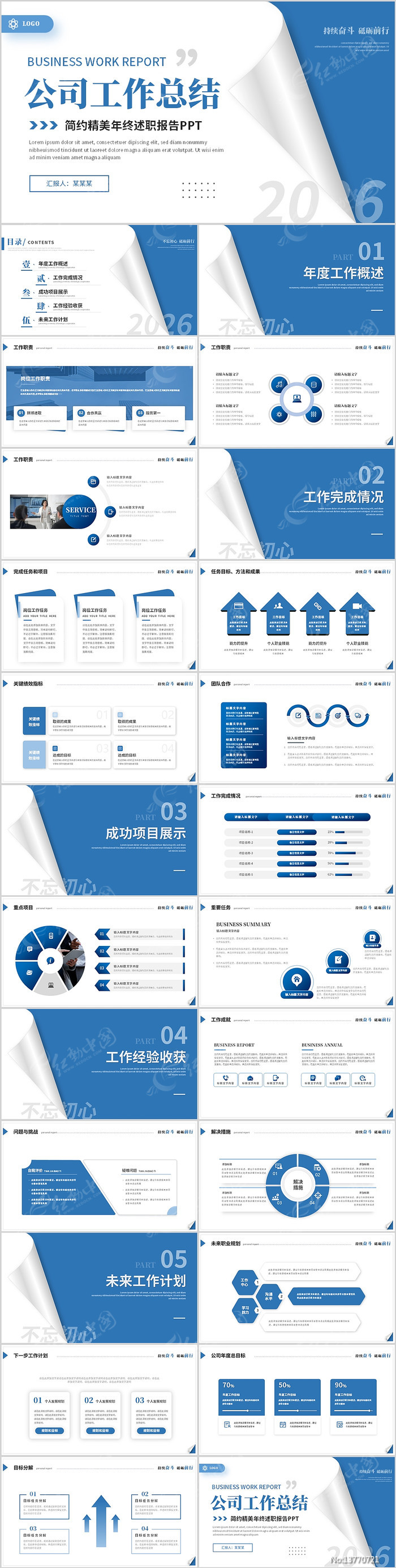 蓝色简约精美年终述职报告PPT下载_红动中国