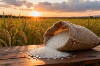 稻田日落麻袋白米洒落