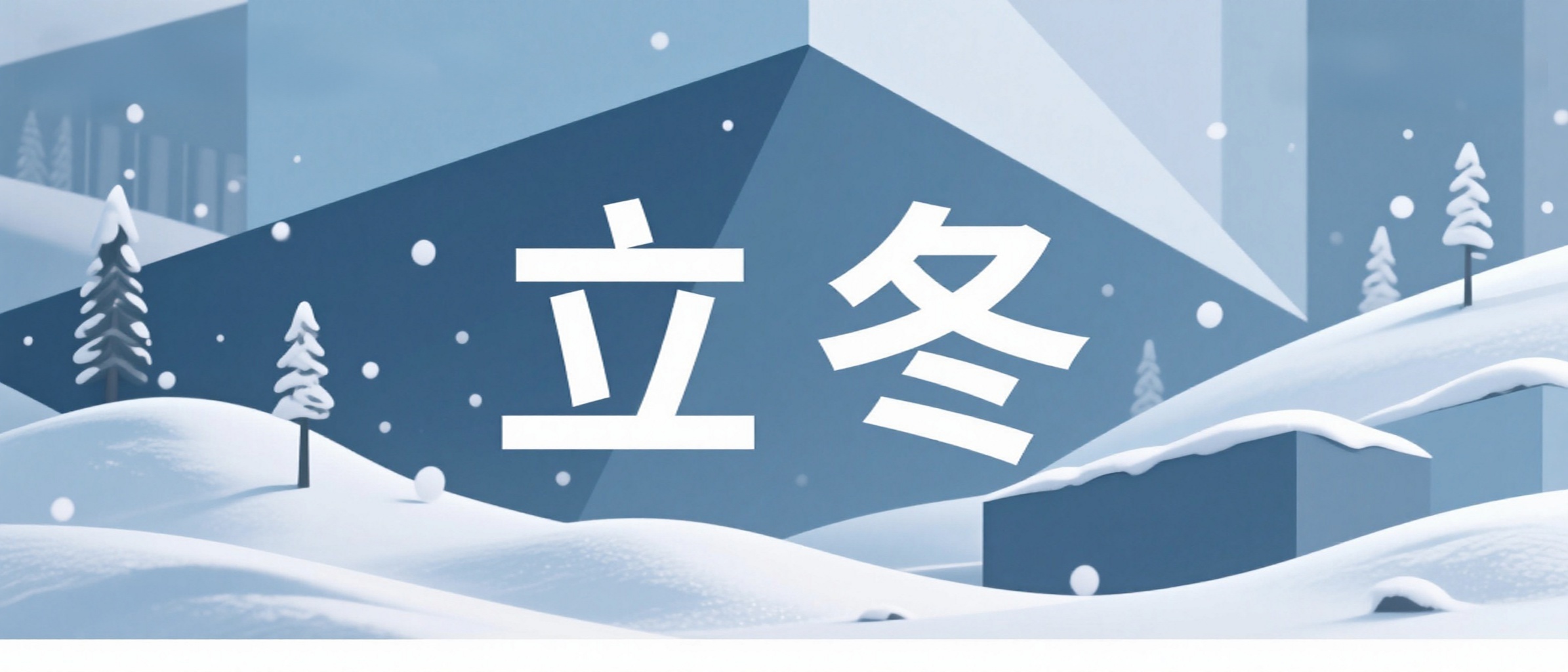 作品描述:现代简约风格,立冬公众号封面,几何雪景元素搭配 “立冬” 简约文字,冷色调凸显高级感