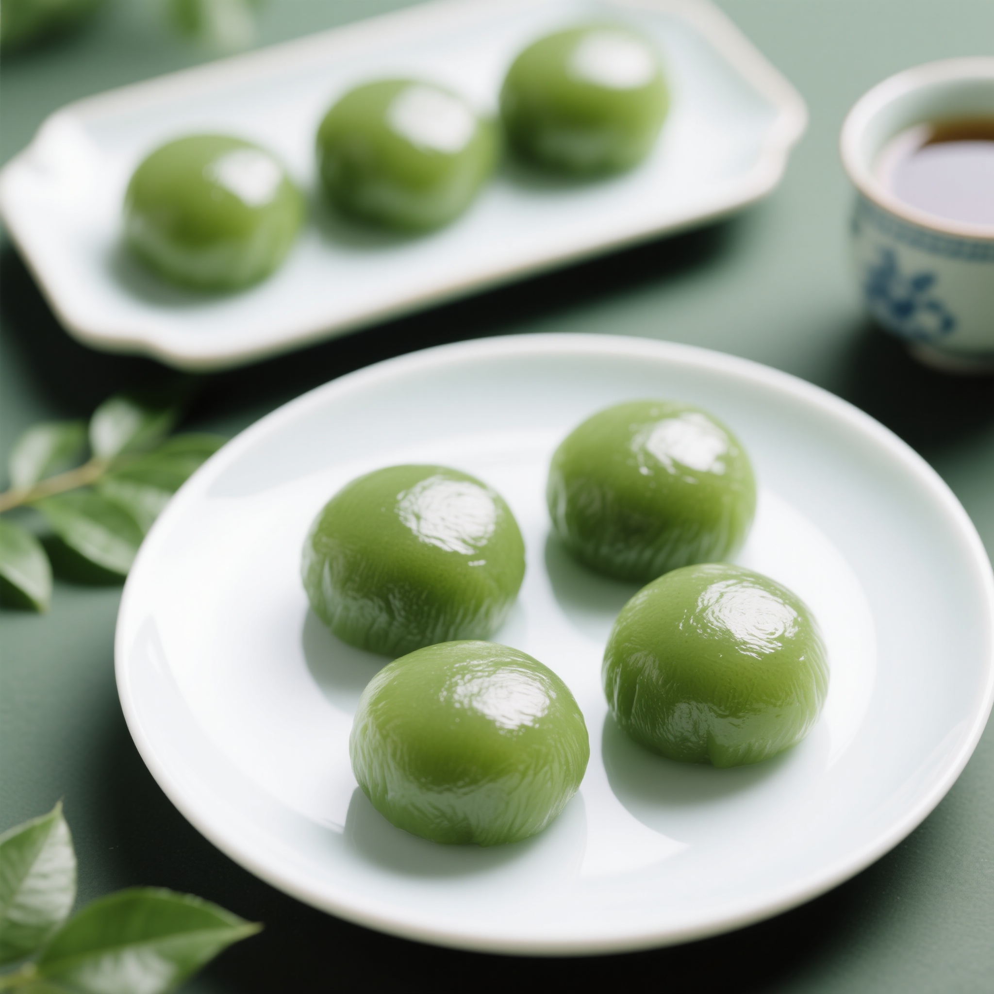 作品描述:绿色青团,青团 点心 甜品 小吃 美食 食物 素材 图片