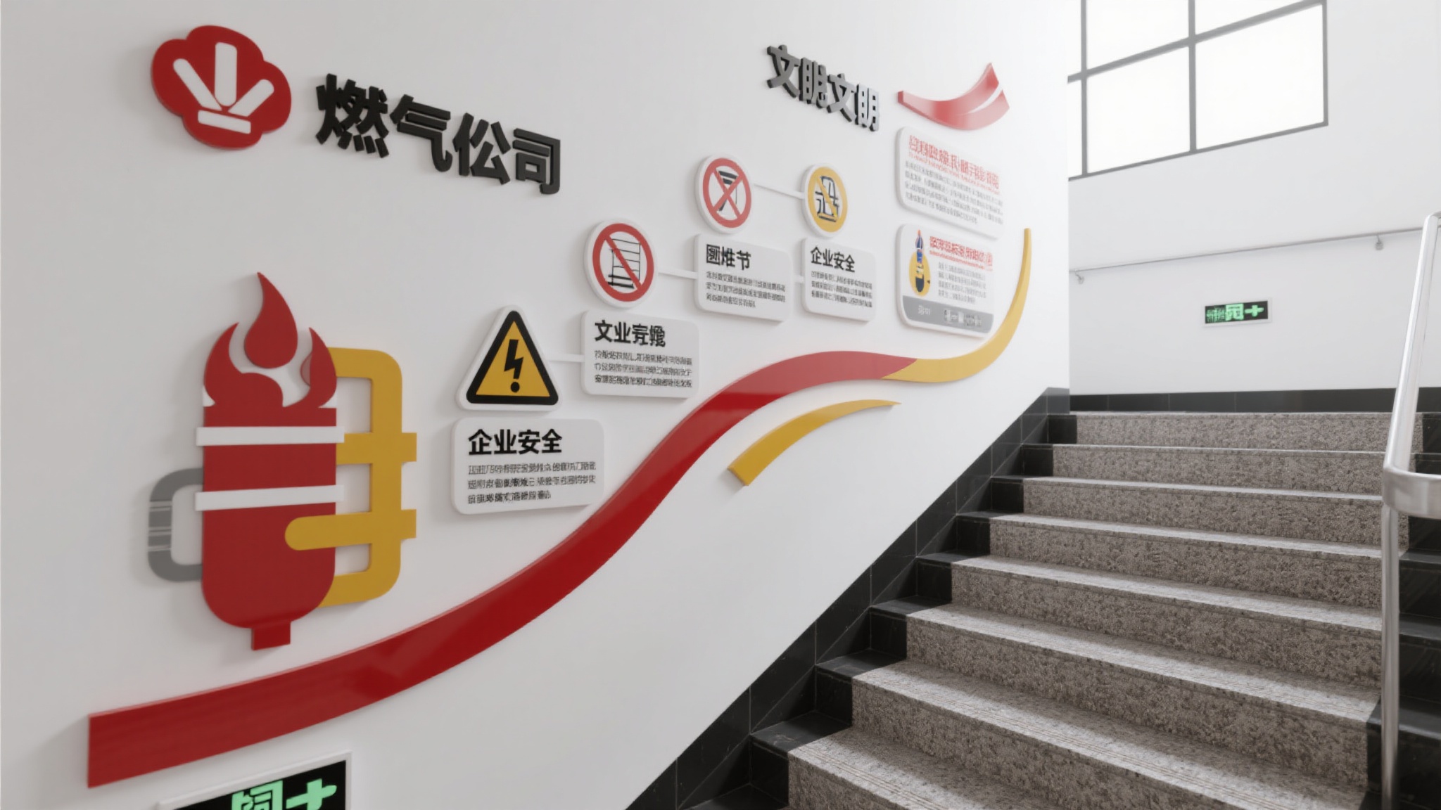 作品描述:帮我做一个天然气公司楼梯文化墙,内容关于企业安全之类的