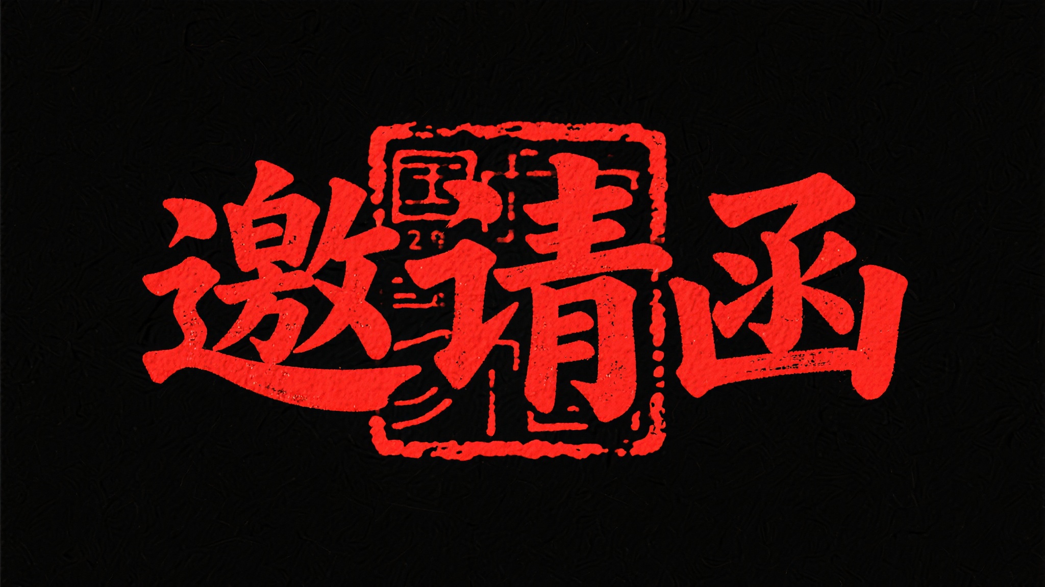 作品描述:中国红 “邀请函” 艺术字,采用类似印章拓印的效果,字体笔画粗细结合,带有独特的复古肌理,简洁大气,背景黑色,能很好地体现出正式且富有传统韵味的邀请感。