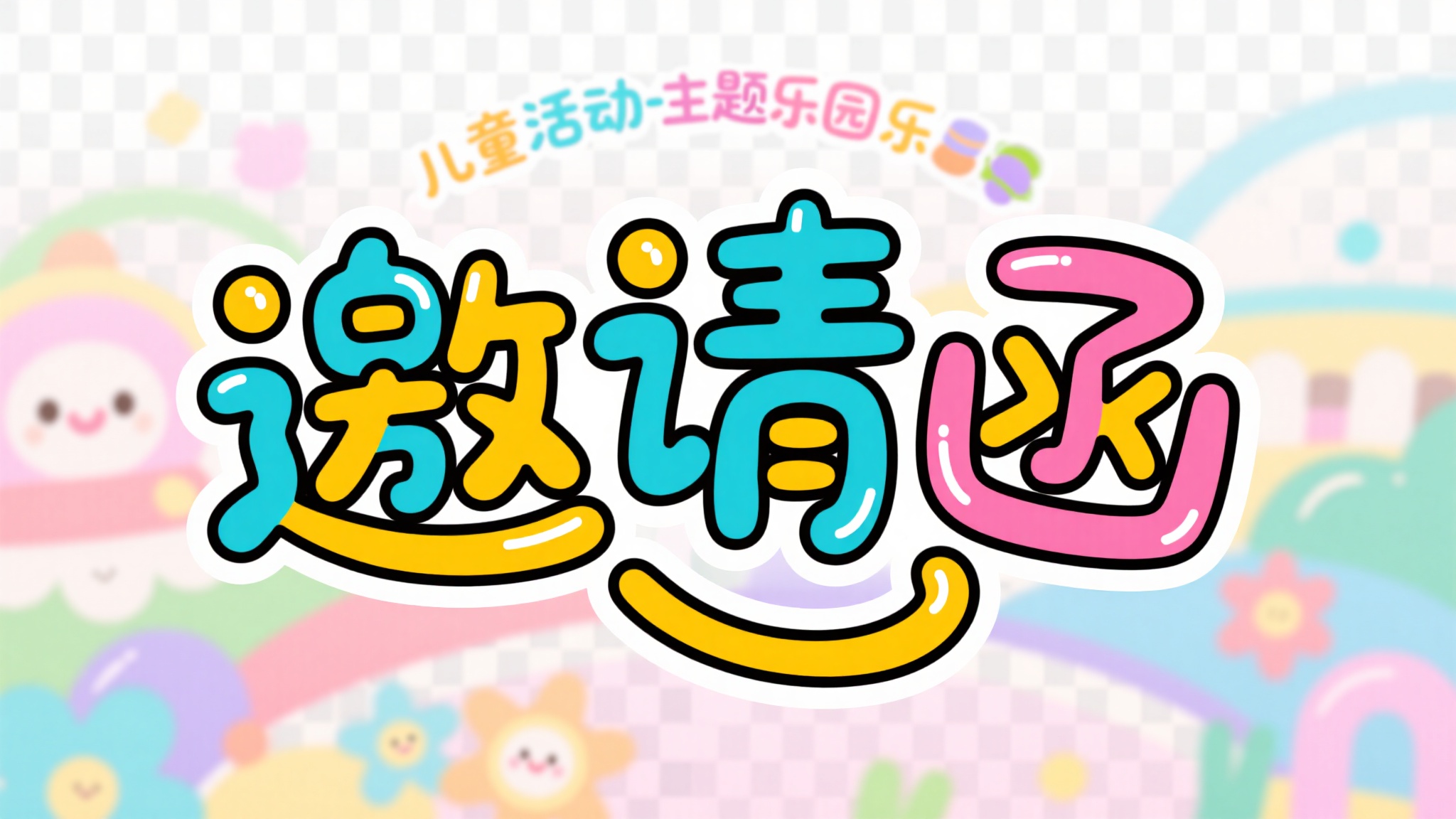 作品描述:卡通手绘 “邀请函” 艺术字,字体造型圆润可爱,带有俏皮的线条弧度,色彩明快鲜亮,像充满童趣的手绘创作,背景透明,适配儿童活动、主题乐园类邀请。