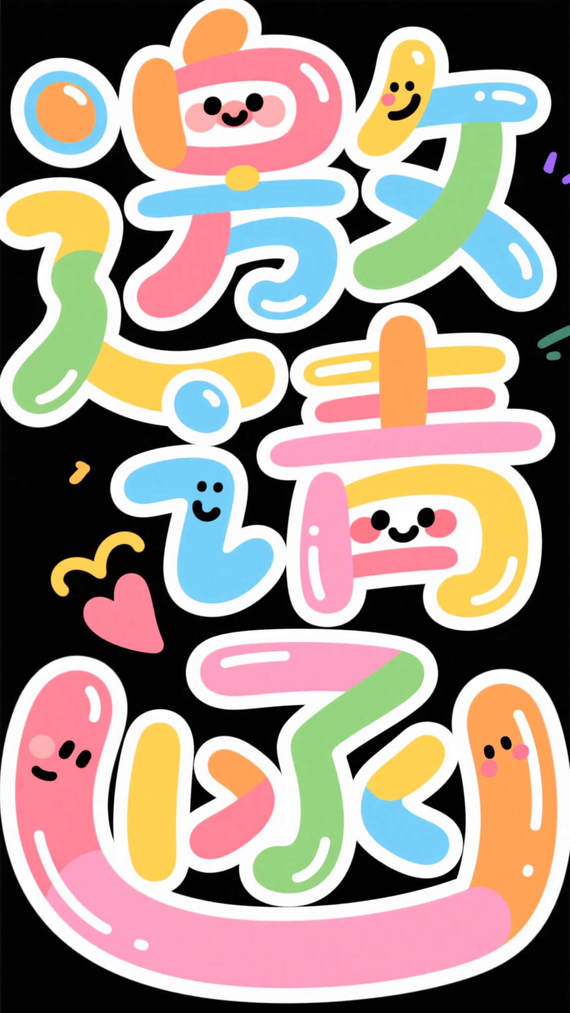 作品描述:手绘卡通风格 “邀请函” 艺术字,字体造型圆润可爱,色彩明快鲜亮,带有俏皮的线条弧度与卡通化的笔触,仿佛是手绘的童趣创作,背景黑色,适合轻松活泼的活动邀请。
