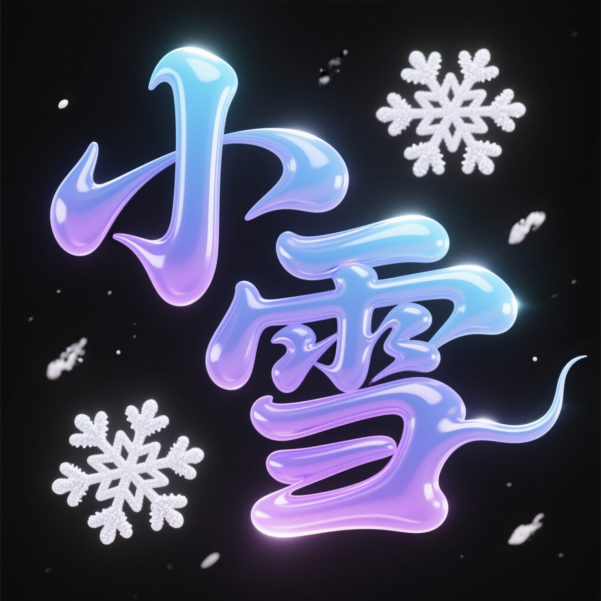 作品描述:3D 流体风艺术字,核心载体是蓝紫渐变流体艺术字 “小雪”(笔画如流动液体带光效),点缀流体雪花(每秒 10 帧流动动效);背景黑色,方便抠图。