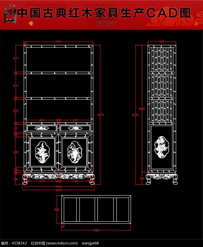 竹节书柜红木家具生产CAD图纸图片下载_红动中国