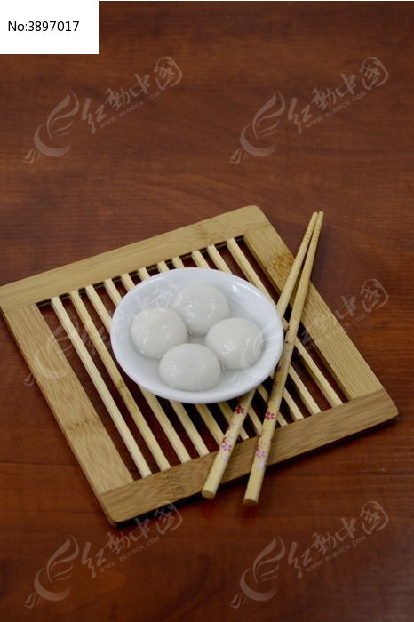 俯拍美食甜品芝麻汤圆和一双筷子特写图片
