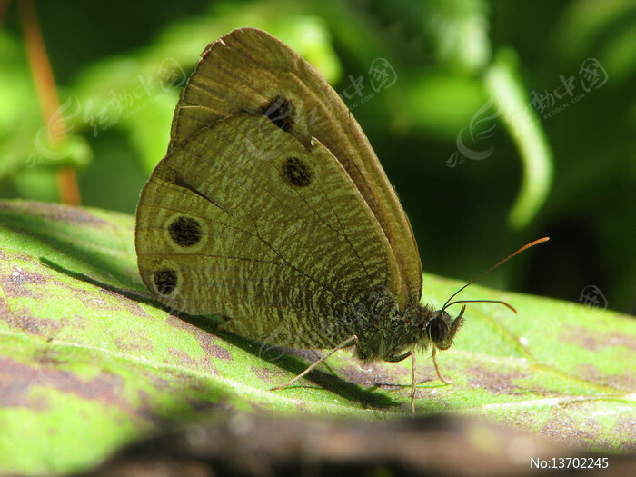 绿色树叶上的一只矍眼蝶