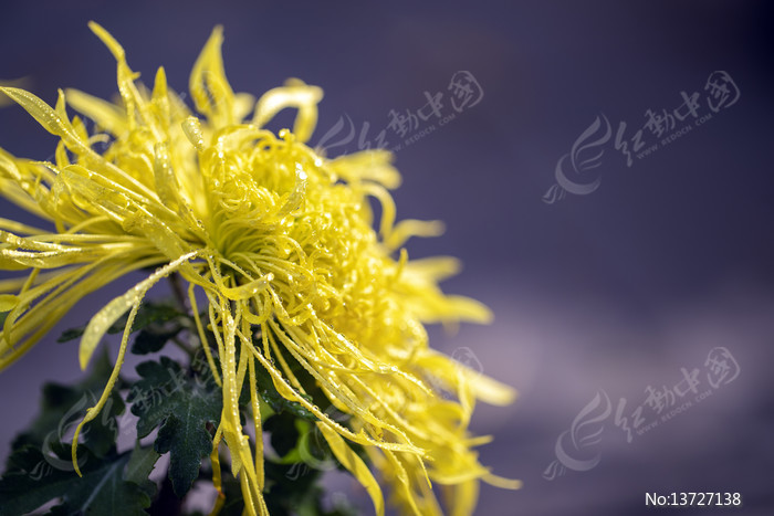 金色菊花带露绽放图